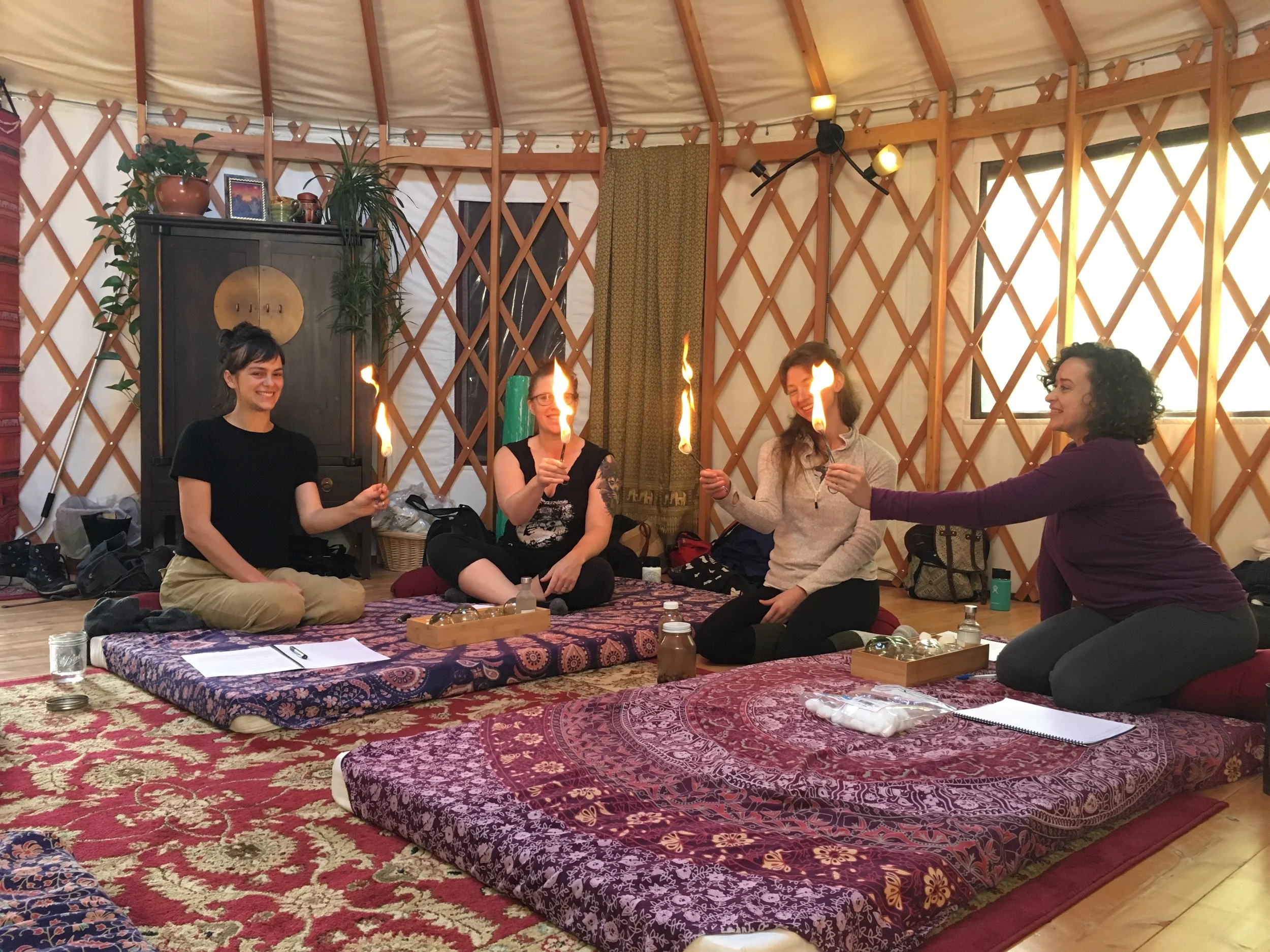 fire cupping class in the yurt