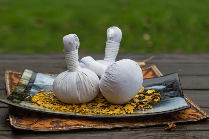 Look for compresses that have, in addition to other ingredients, plai (cassumunar ginger), lemongrass, kaffir lime, calamus, turmeric and tamarind leaves. If one of these ingredients isn't in the formula you are contemplating that's fine, but for a good generic herb ball you want most of these, and you definitely want plai.